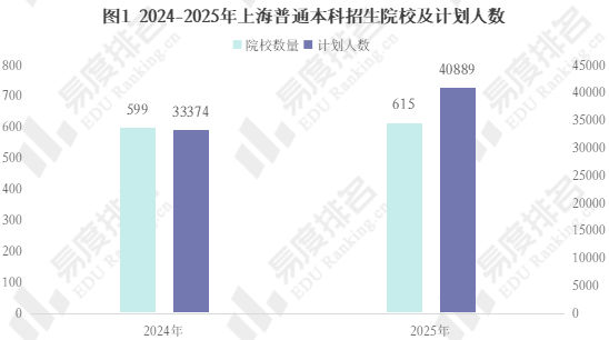2025年高考在上海本科普通批招生的高校达到615所,较去年增加16所。计划招生人数4.09万人,较去年增加7400余人,增幅达22.5%。