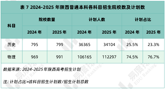 7. 历史科目招生计划减少6.22%,计划占比仅23.3%