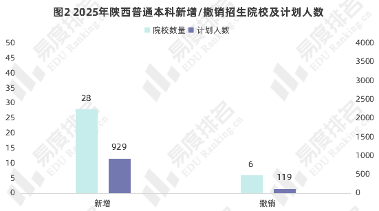 相比去年,今年新增28所高校在陕西招生,新增院校的招生计划人数达到929人。撤销招生计划的院校仅有6所,这6所高校去年的招生计划为119人。