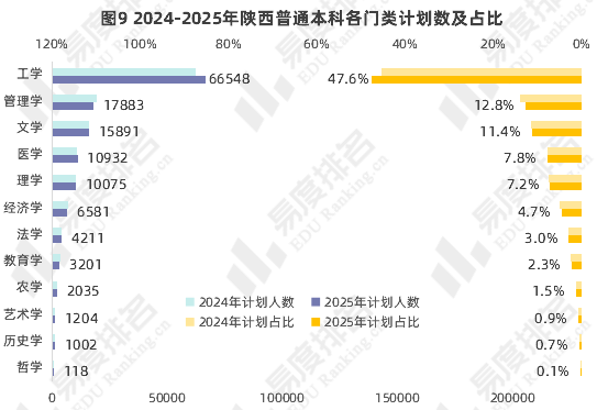 注:1.仅统计本科普通批次招生计划,未统计试验班招生计划数;2.计划占比=该门类招生计划数/招生计划总数。
