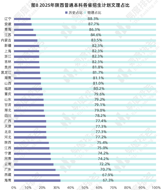 注:1.仅统计本科普通批次招生计划;占比=该省份该科目计划招生人数/该省份计划总人数。