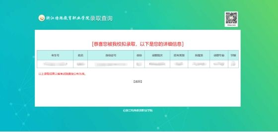 第二步:进入浙江特殊教育职业学院高考录取查询页面。