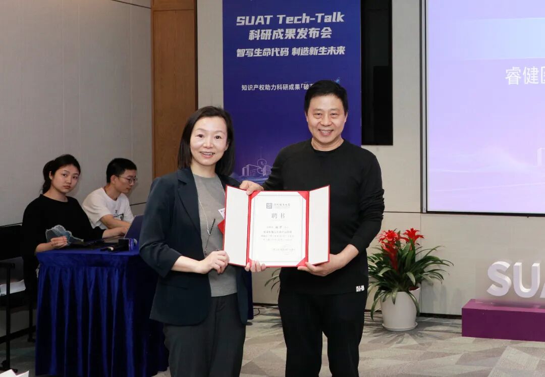 深圳理工大学还邀请了睿健医药科技有限公司联合创始人兼CEO魏君作了题为《神经退行性疾病的通用型细胞药物开发之路》的分享,并聘请她为学校的产业导师,为学生提供创新创业指导。魏君表示,睿健医药将开放企业实验室资源,为学生提供实习、参观等实践机会。