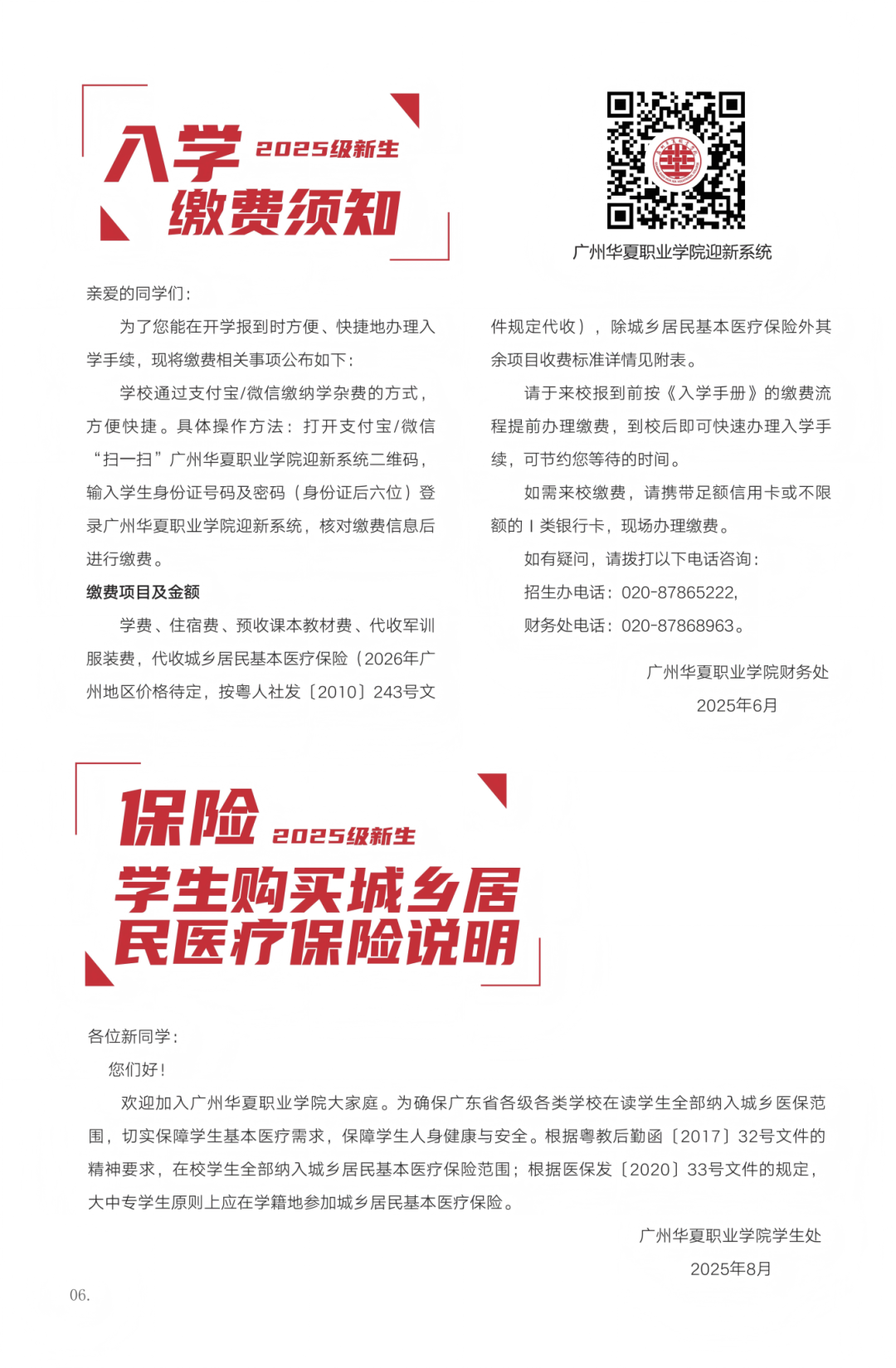 关注“广州华夏职业学院招生办公室“官方微信公众号,届时将会发布最新入学指南、缴费指引、迎新安排、校园风光、生活等入学资讯,以便帮助大家顺利入学。