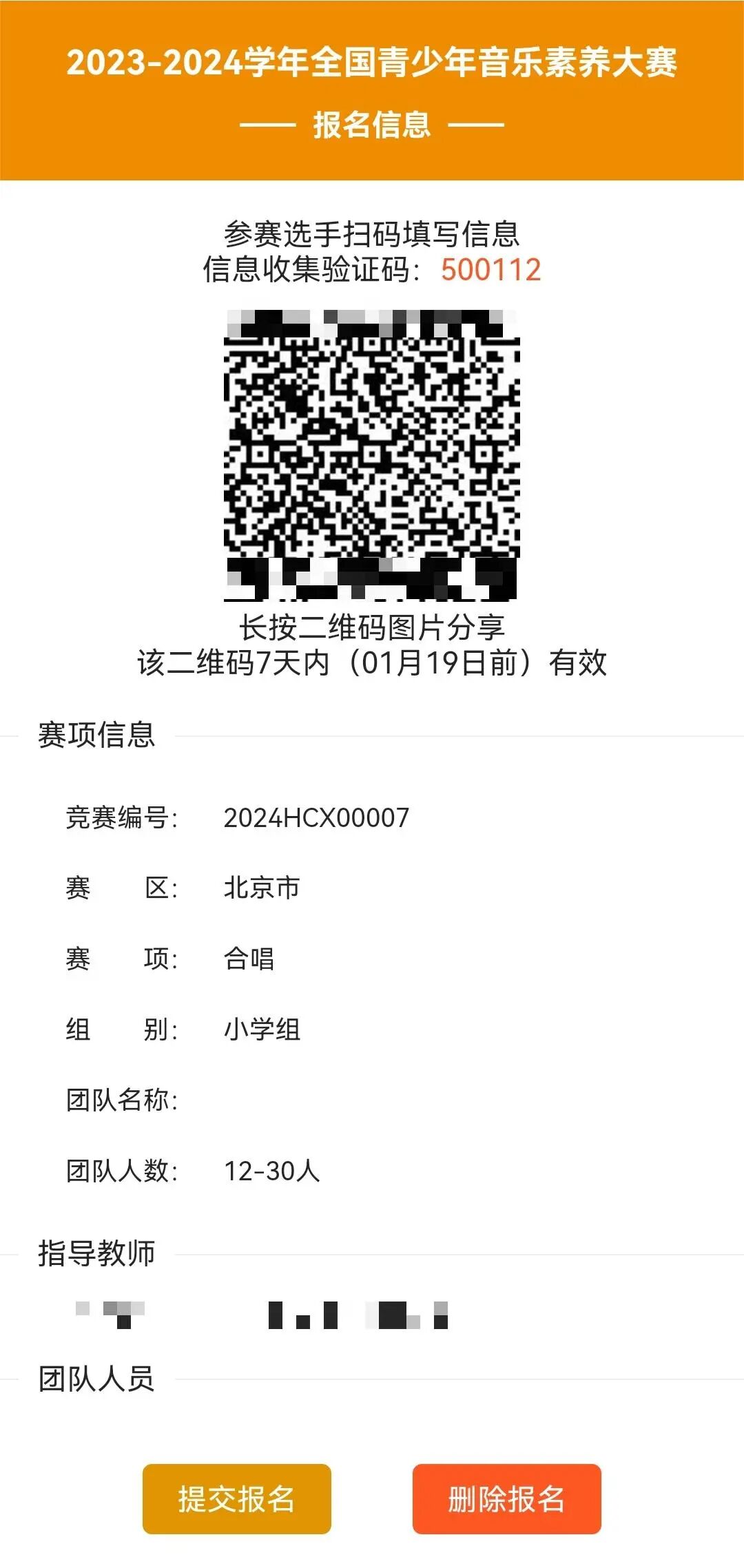 注:歌曲原创、流行乐队合奏可通过点击相关按钮进行添加或删除选手信息,但人数须符合赛项规则要求。