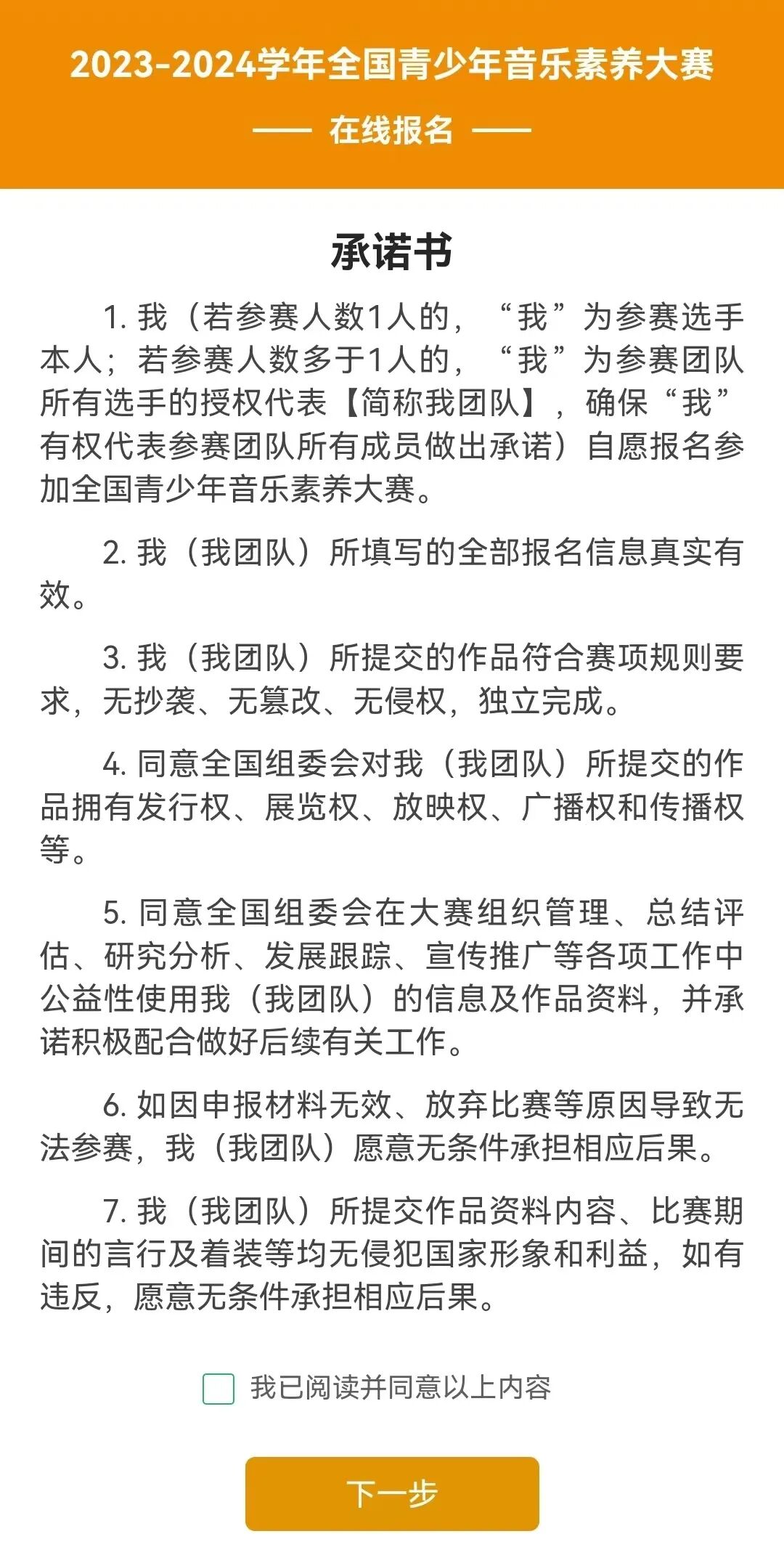 2.仔细阅读承诺书,无异议后勾选“我已阅读并同意以上内容”并点击“下一步”。