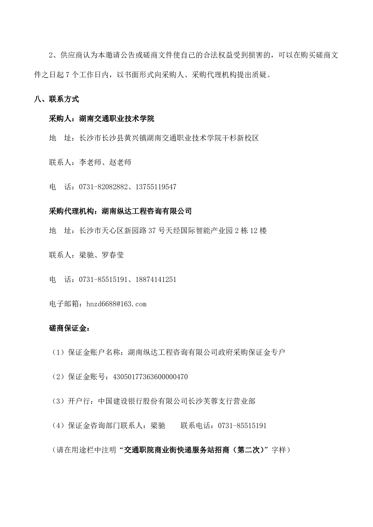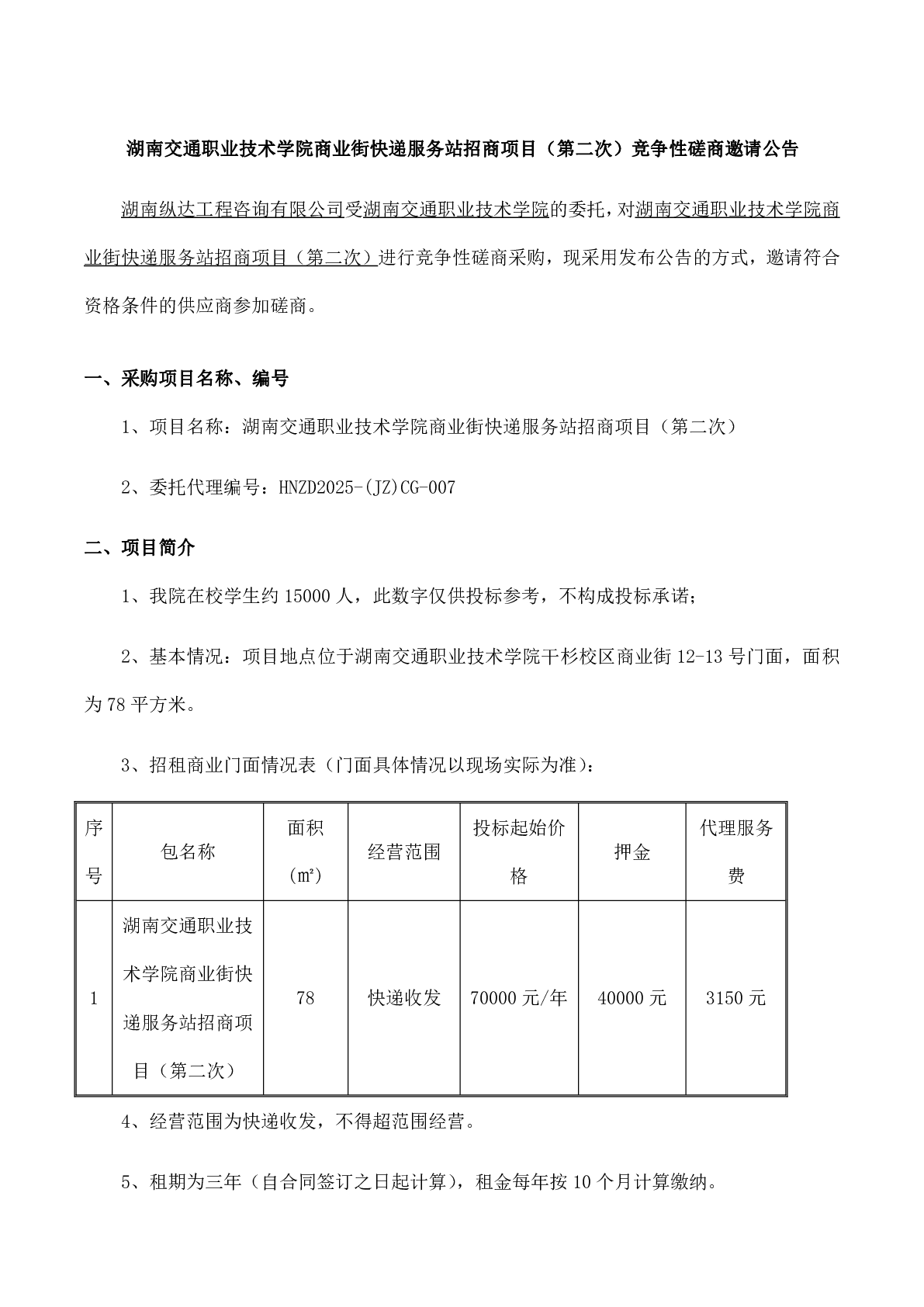 湖南交通职业技术学院商业街快递服务站招商项目(第二次)竞争性磋商邀请公告