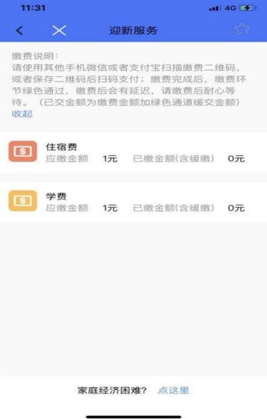 (3)若家庭经济困难(即申请生源地助学贷款或高校助学贷款),可申请绿色通道。申请通过后及时查看扣费情况,若“已缴金额”后出现相应数字,则说明缴费成功。