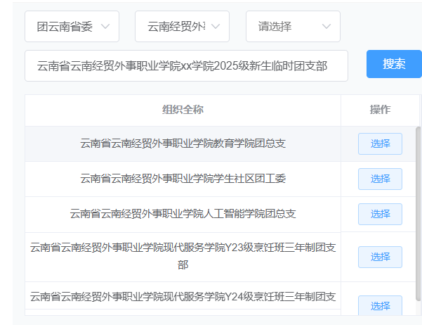搜索:云南省云南经贸外事职业学院xx学院2025级新生临时团支部