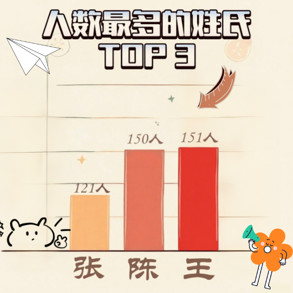 在姓氏“擂台赛”上,王姓“小勇士”以一人之差险胜陈姓,勇摘“第25级姓氏人数大PK”的冠军!张姓、李姓“小战士”也不遑多让,稳稳占据第三、第四的席位!