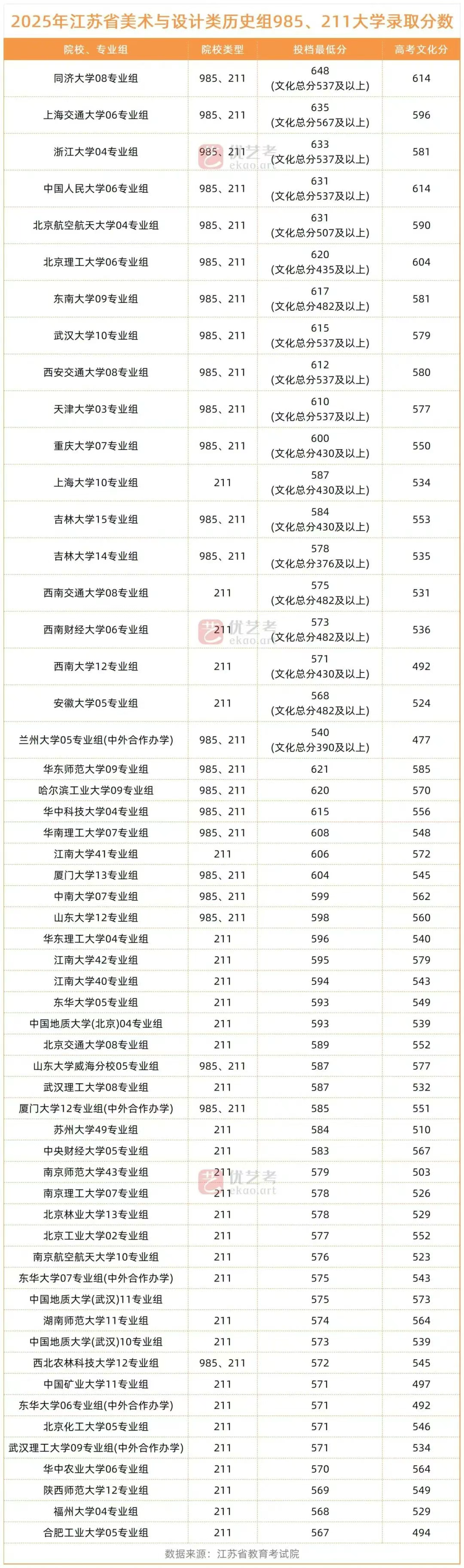 在弄清楚这个问题之前,我们需要先知道985、211大学文化录取分都是多少,我们以2025年江苏省