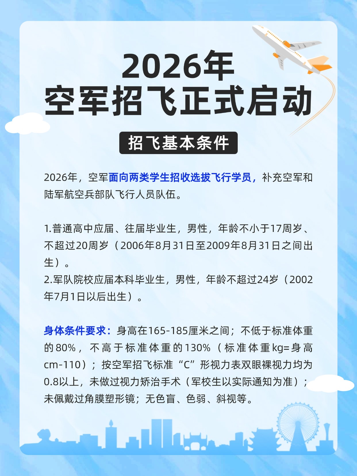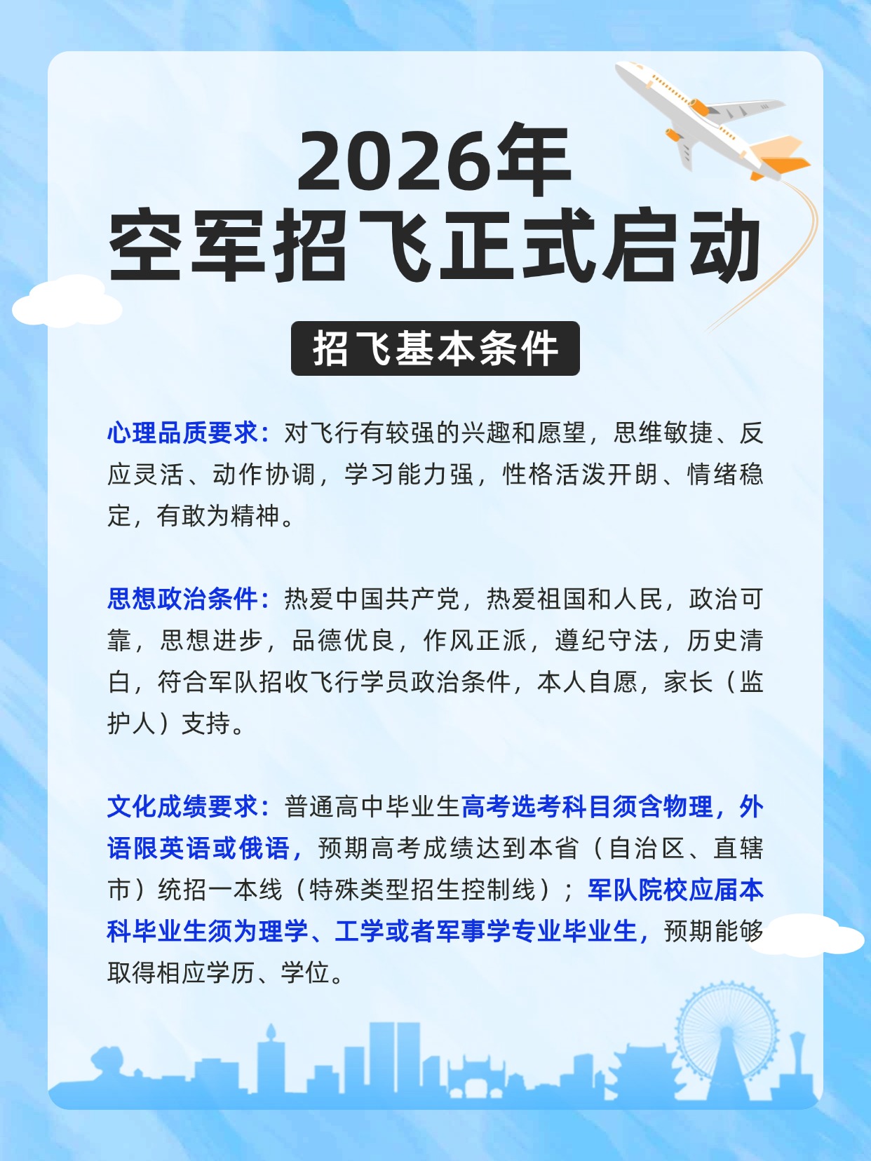 2026年空军招飞即将拉开帷幕,对于有“蓝天梦”的考生而言,这是一个不可错过的机会。今天优志愿将为大家详细介绍空军招飞相关内容,一起了解!
