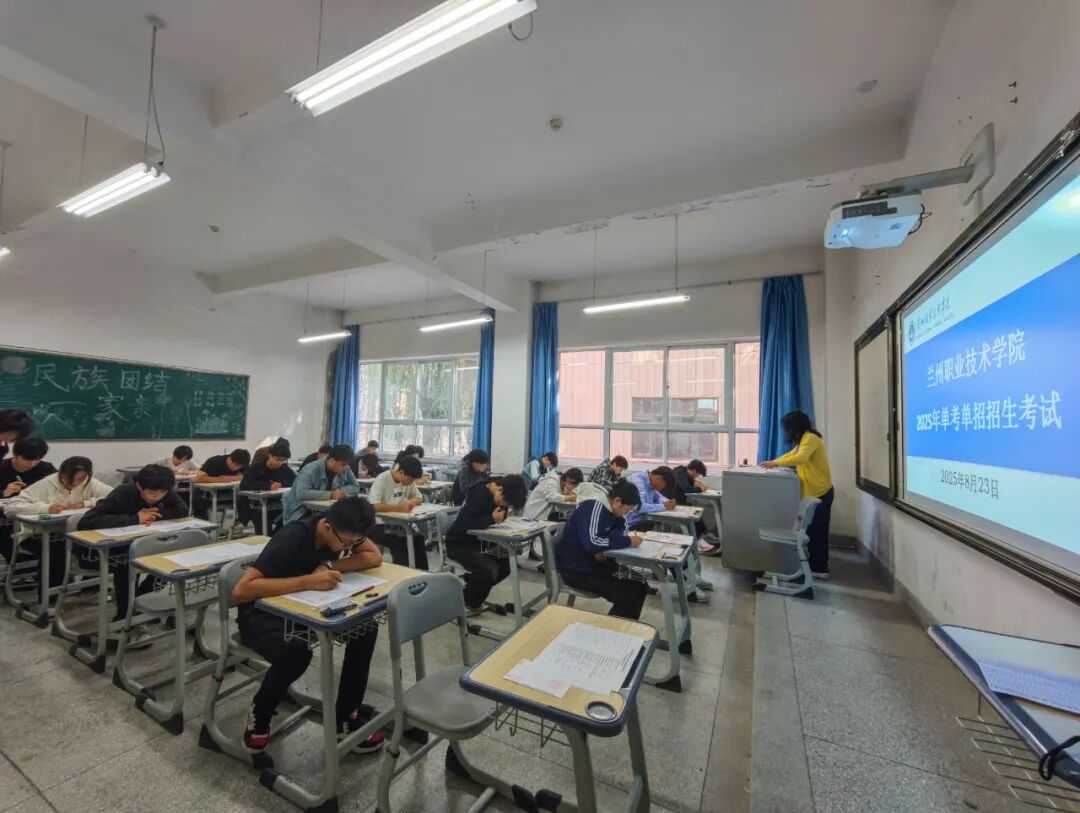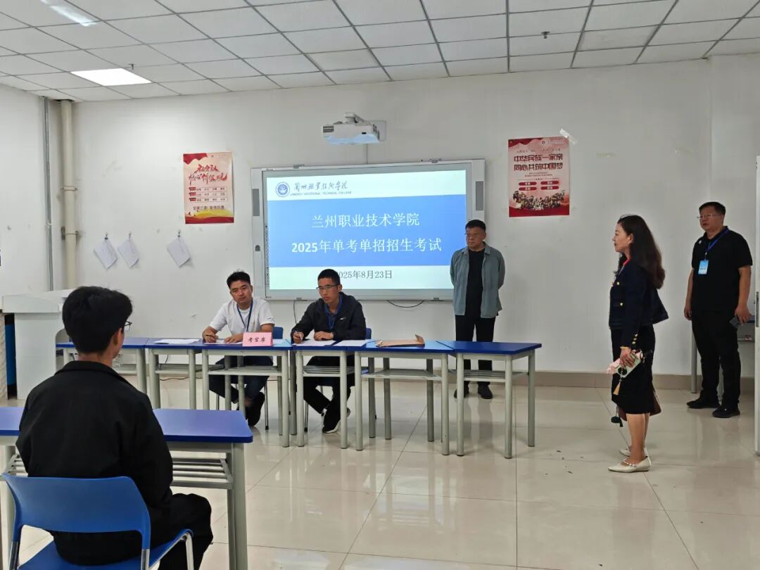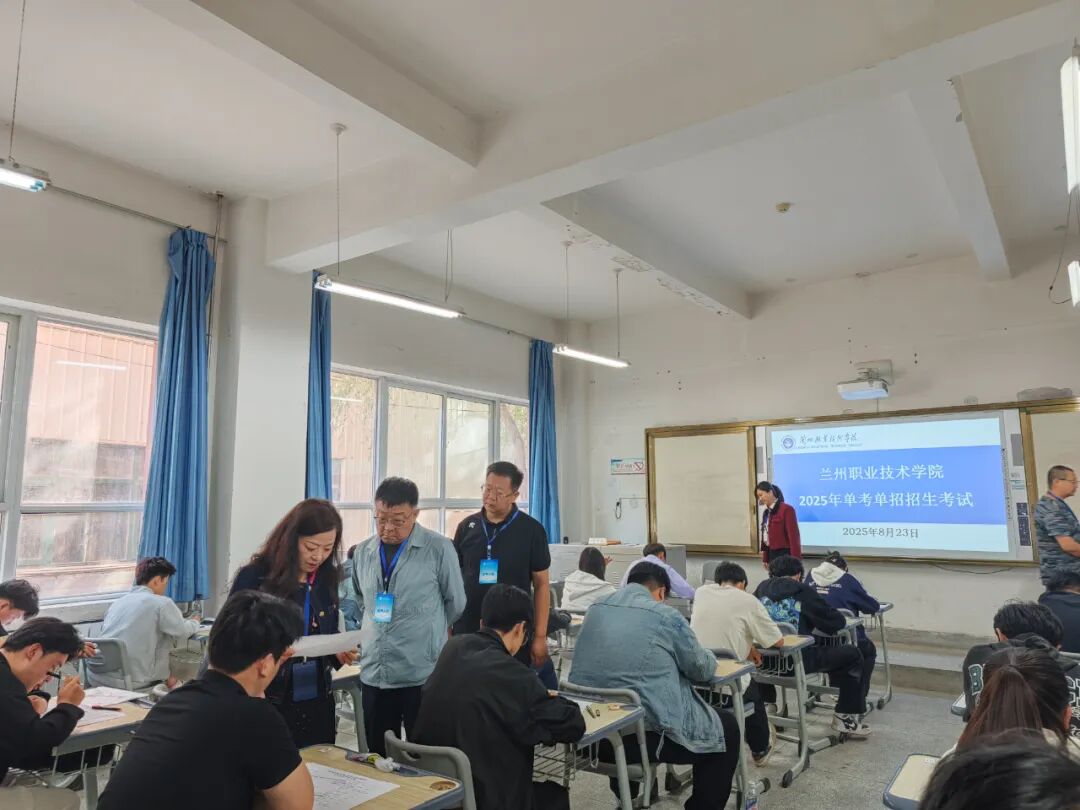 8月23日,兰州职业技术学院2025年单考单招考试在总校区举行。学院党委书记寇桂杰,党委副书记、院长谢军武,副院长范宏伟,党委委员、副院长薛亚东,党委委员王致国现场巡查考试,甘肃省教育考试院工作人员现场监督。
