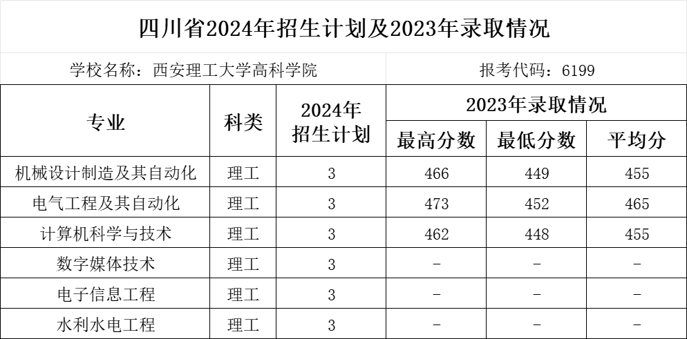 西安理工大学高科学院在四川省2024年招生计划及2023年录取情况
