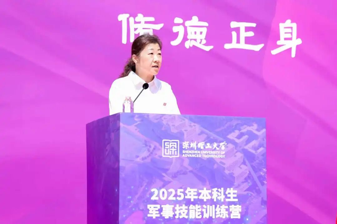 “少年强,则国强。军训是国防教育的重要环节,更是锤炼意志、塑造品格的宝贵机会。”深圳理工大学党委副书记、纪委书记王慧作军训动员讲话。