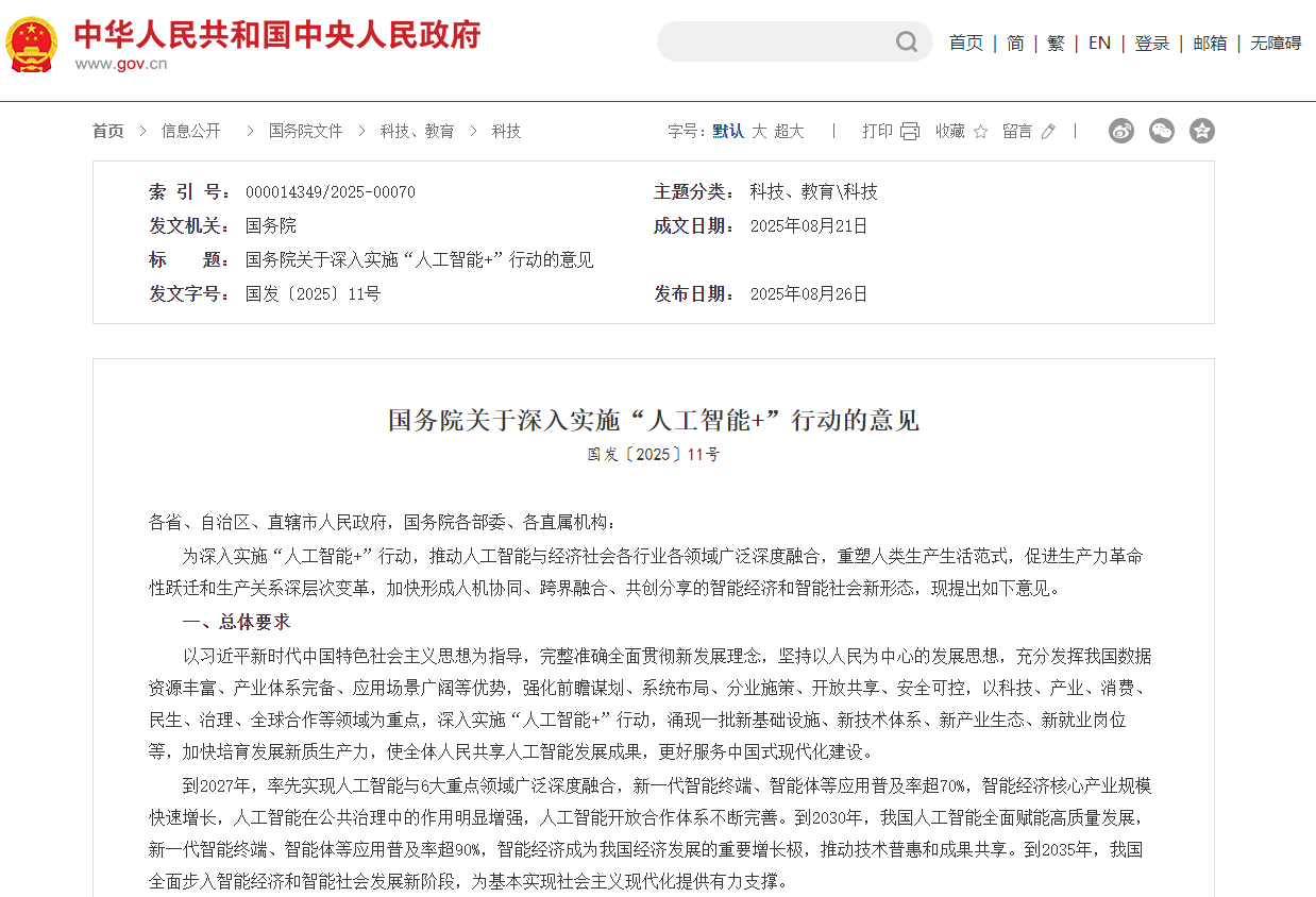8月26日,国务院正式发布《关于深入实施“人工智能+”行动的意见》,提出六大重点领域:科学技术、产业发展、消费提质、民生福祉、城市治理、全球合作。这一政策标志着我国全面进入人工智能驱动的智能经济时代。对于高中生而言,这不仅是国家战略的转折点,更是个人成长与职业选择的关键机遇。