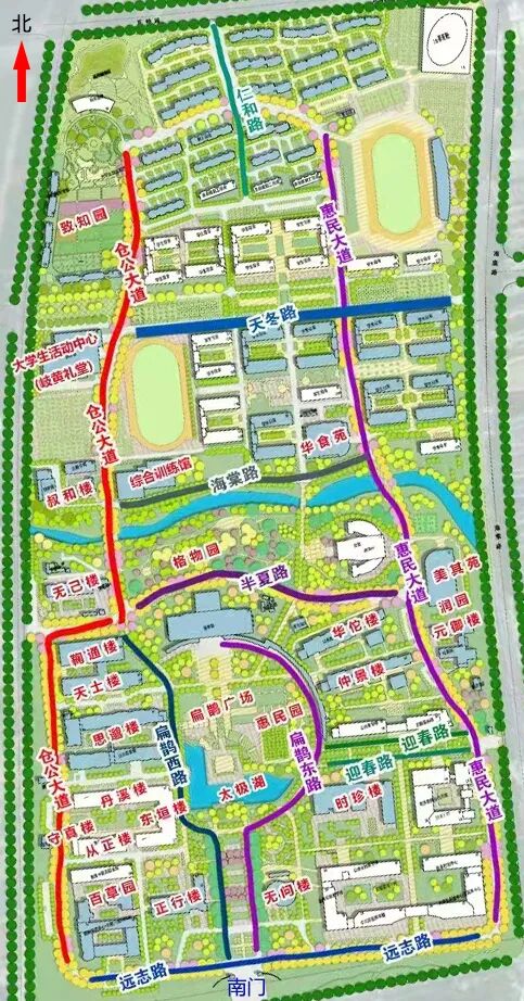 运动场坐落于生活区附近,包含田径场、篮球场、排球场、网球场及综合训练馆等设施,是学生进行体育锻炼、举办运动会和各类球赛的场所,日常及周末人流活跃,充满活力。