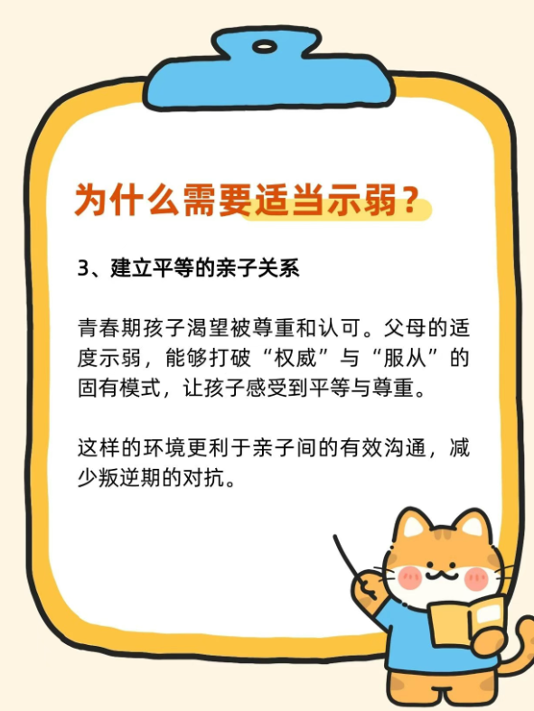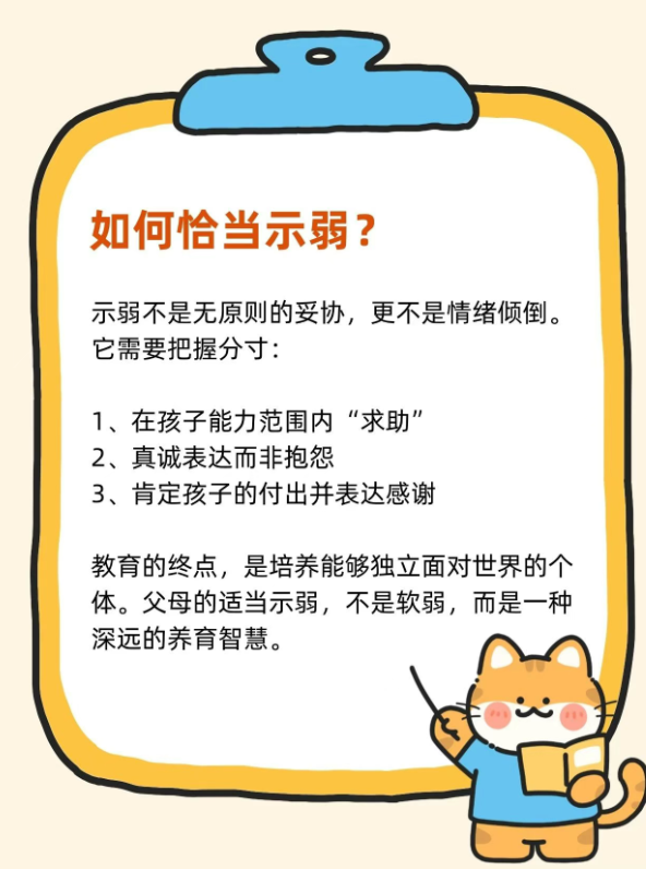 在传统观念里,父母应当是强大的、全能的守护者。然而,面对逐渐成长的孩子,适当的示弱,反而是一种更为智慧的教育方式。