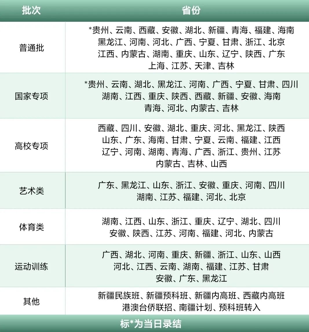 截至7月29日下午18:00,我校已完成以下省份相应批次(类型)录取工作: