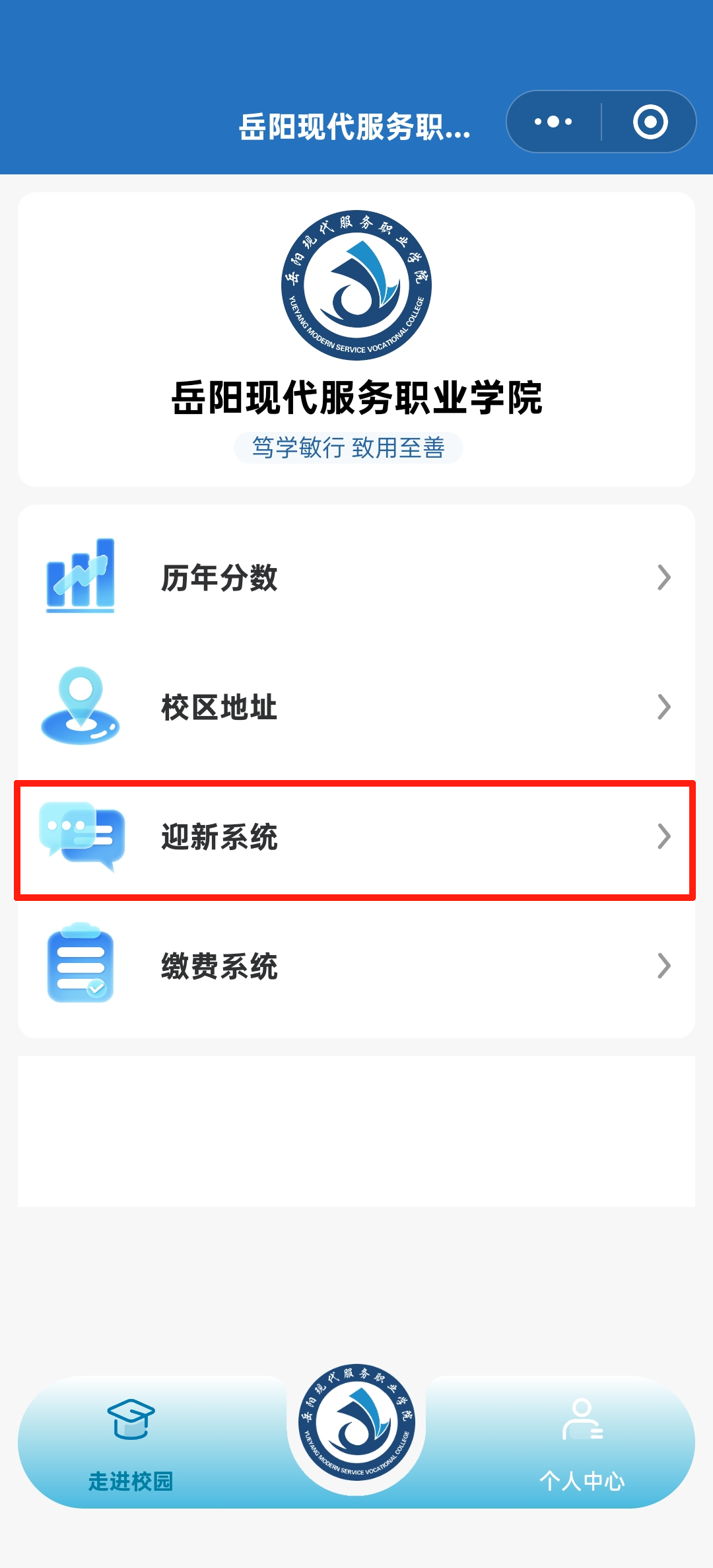 点击【迎新系统】进入登录页面 。输入姓名+身份证号登录,并完善个人信息。