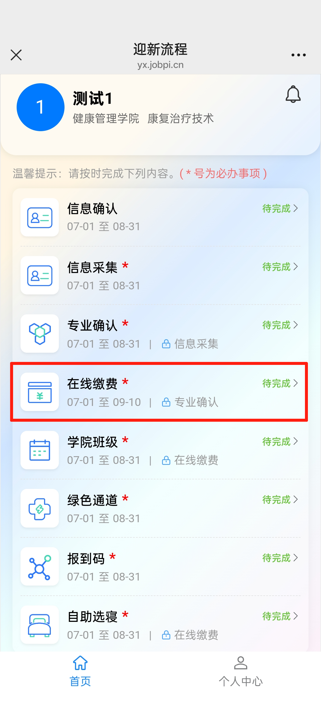 专业确认完成后点击在线缴费,根据系统提示在手机上完成支付。
