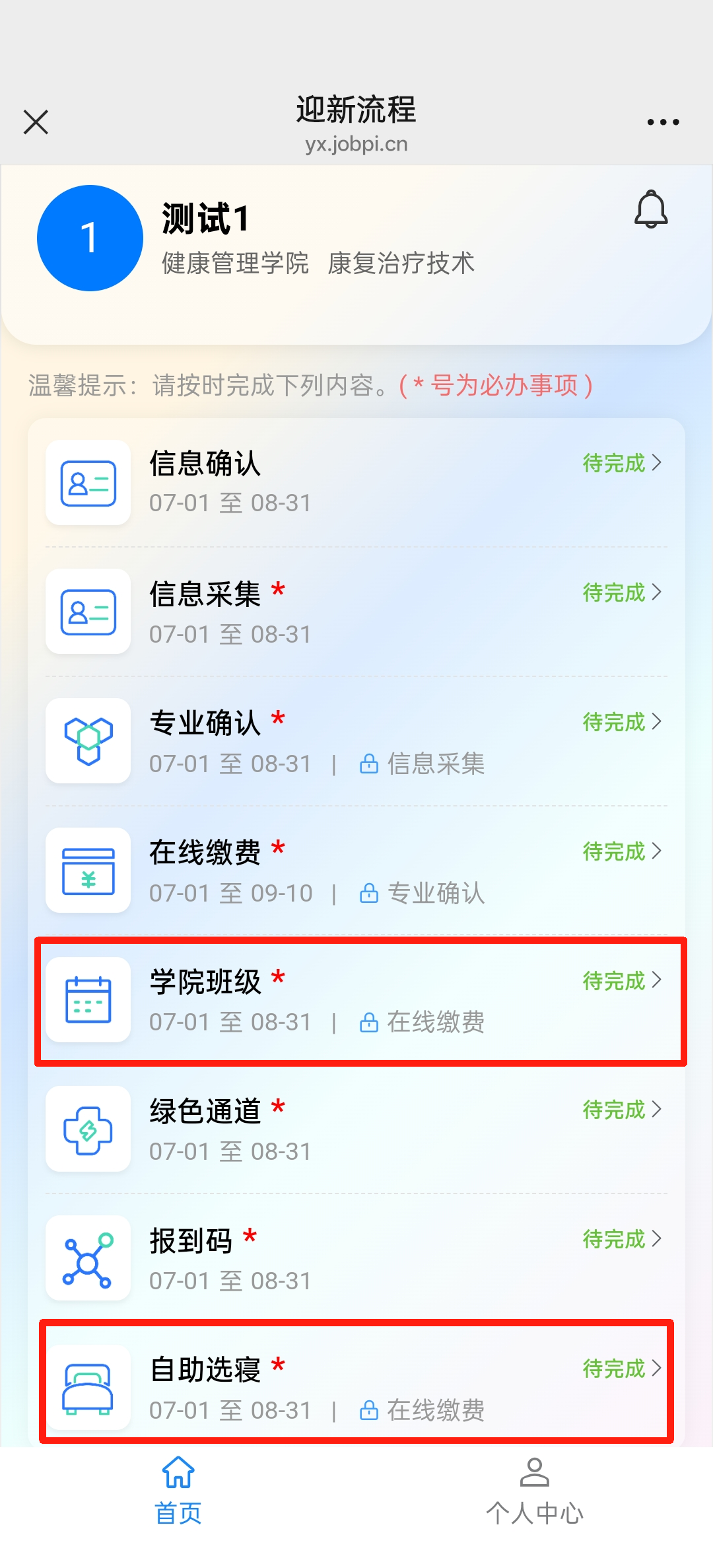 完成缴费后,在九月开学前可点击“确认班级”查看班级情况。班级确认后即可点击“选宿舍”自主完成宿舍选择。