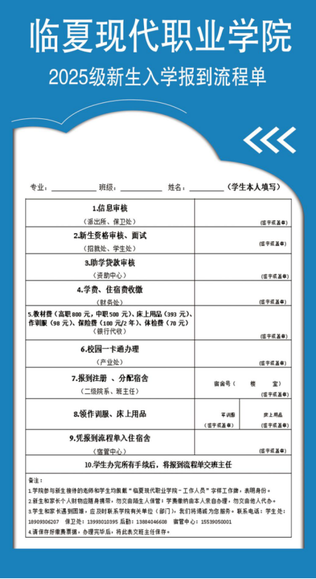 二、报到地点:临夏现代职业学院本校区(地址:甘肃省临夏市北滨河东路43号)临夏现代职业学院三、报到须持材料: