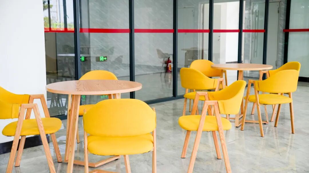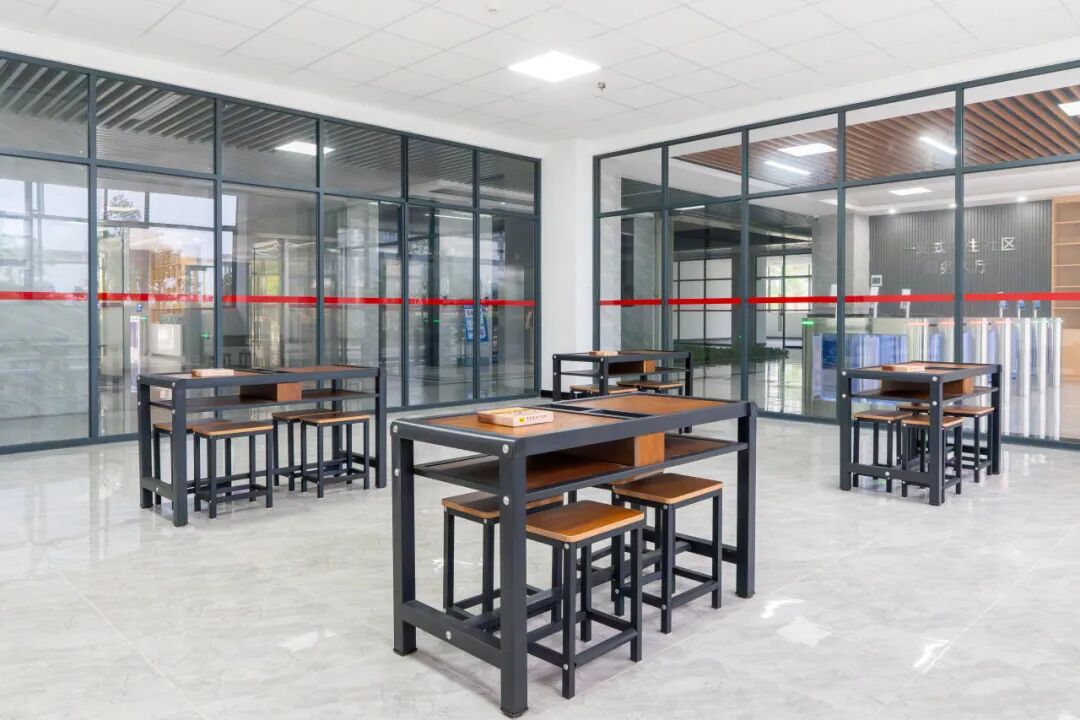 沙发、茶几、绿植布置得像 “小客厅”,家长来校探望、朋友来玩时,不用在宿舍挤着坐,在这里聊天更舒适、更私密。