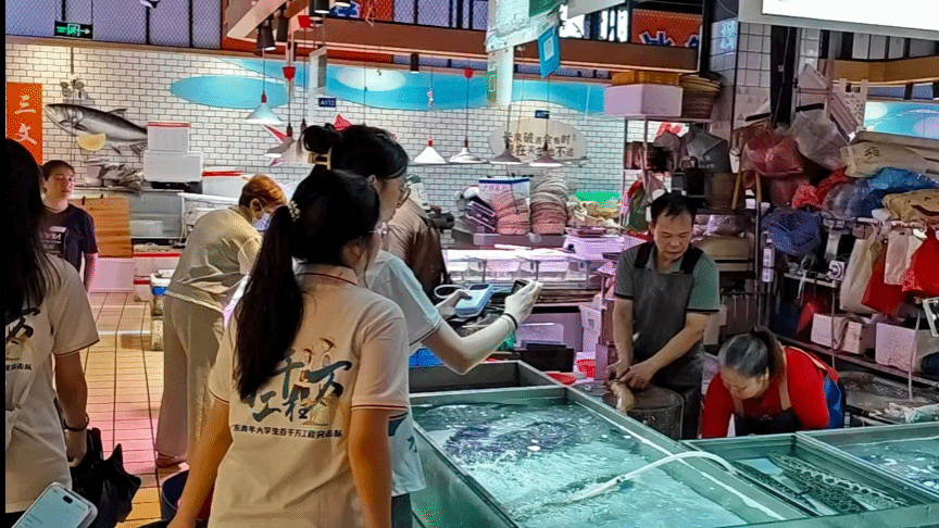 另外,“水到鱼行 ”实践团还前往张家边中心市场及周边市场,通过随机访谈、问卷调研等方式,详细了解普通民众的购鱼喜好与消费频率。调研结果显示,消费者在鱼类消费上更倾向于鲜活、本地养殖的品种,鱼类的新鲜度和性价比是民众关注的核心要素,部分消费者对具有地方特色的鱼类深加工产品表现出一定兴趣,但对新型鱼制品的认知仍较为有限。