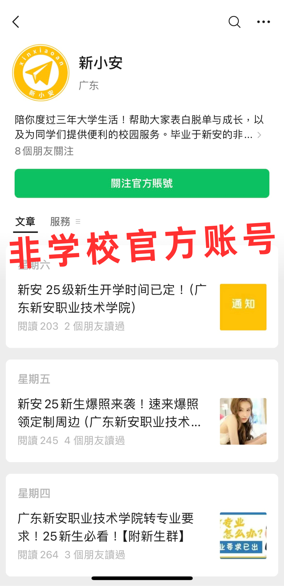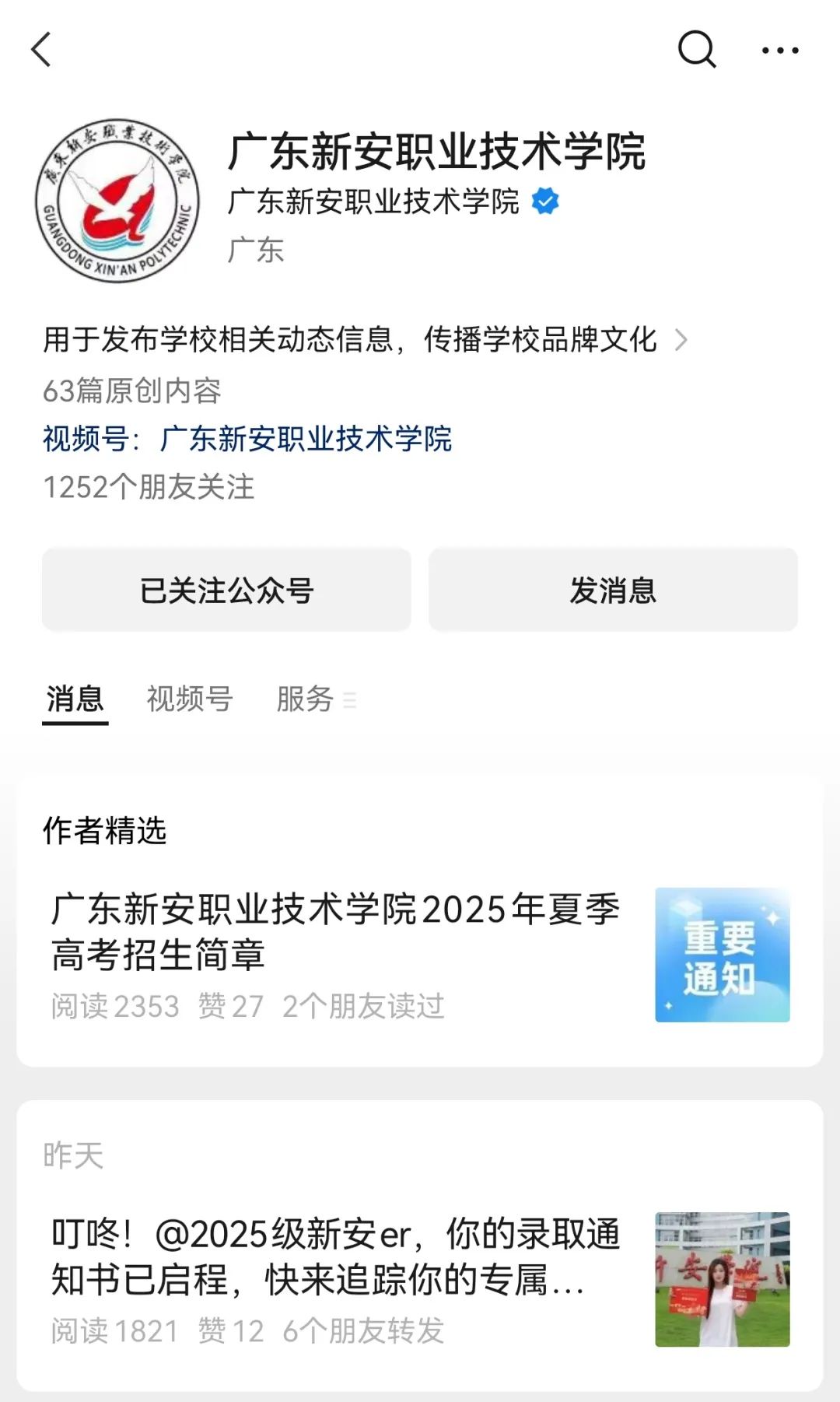 这里都是你最可靠的官方纽带!认准官方名称:广东新安职业技术学院立即关注,不错过每一个精彩瞬间!