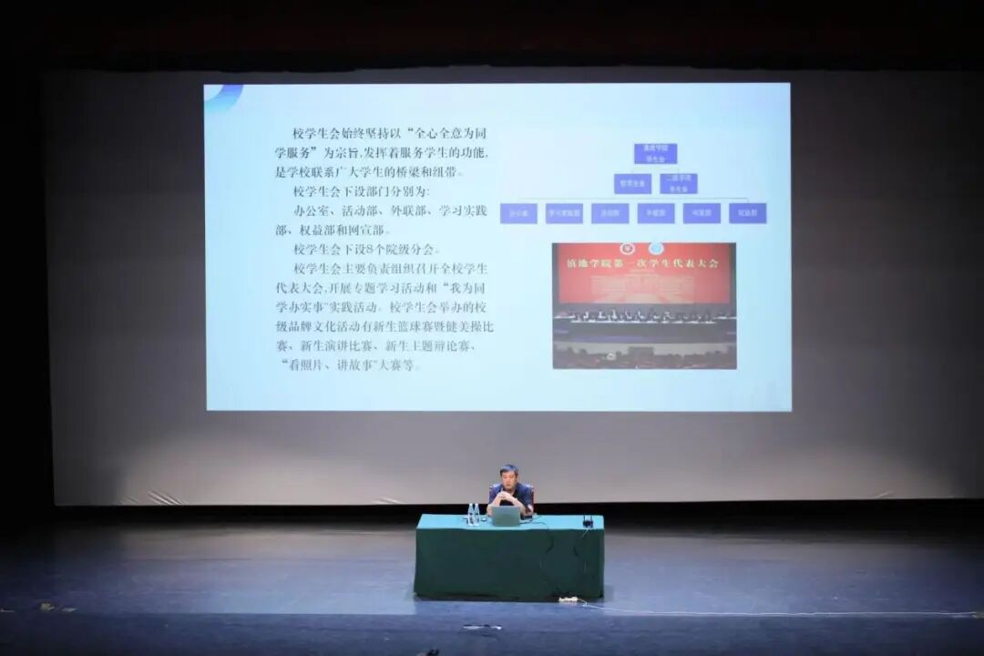校团委书记王怀磊老师为新生带来题为“团学组织和校园文化活动”的专题讲座,详细介绍我校团学组织结构、品牌活动及竞赛荣誉,展现滇院学子积极服务社会、奉献青春的责任担当,鼓励新生在活动中提升政治素养和综合能力。