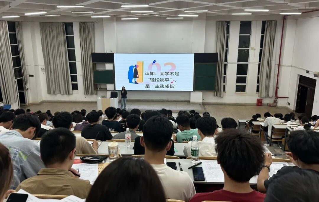 心理健康教育咨询中心副主任刘诗林老师以“成为你想成为的人”为主题,引导新生思考自我定位与发展,讲授压力调节与时间管理方法,启发大家认识内心真正的幸福与成就,为适应大学生活提供有益指引。
