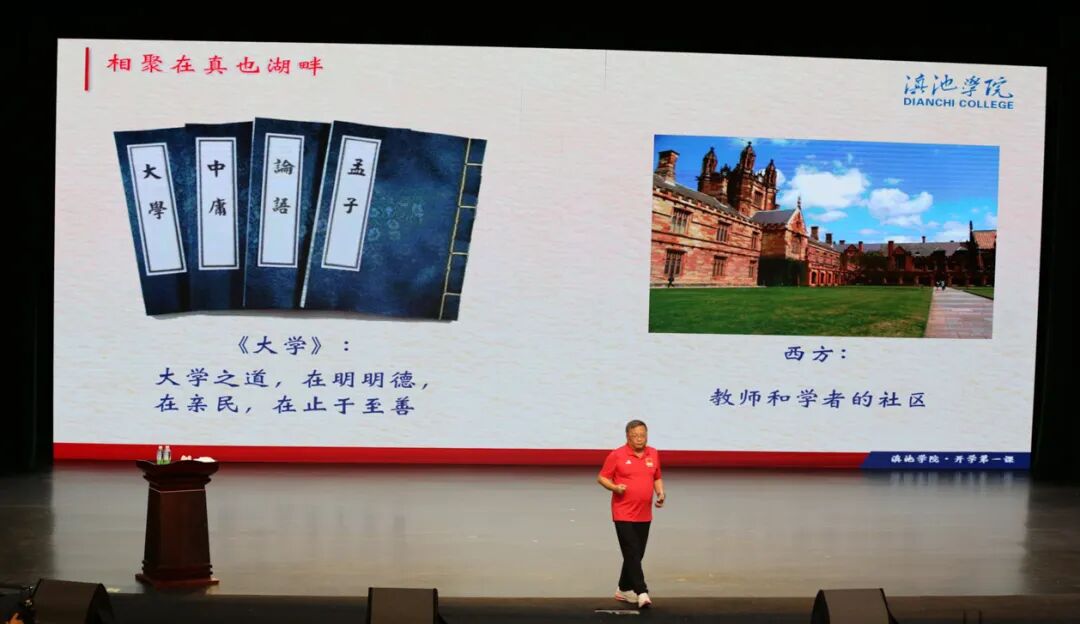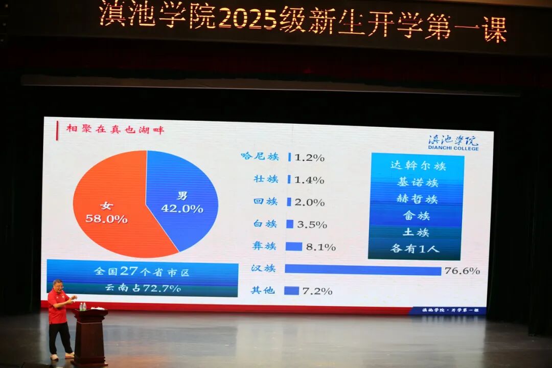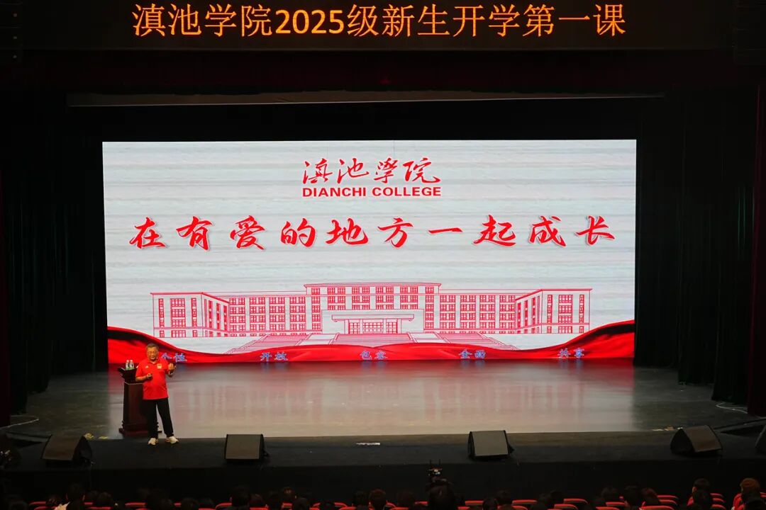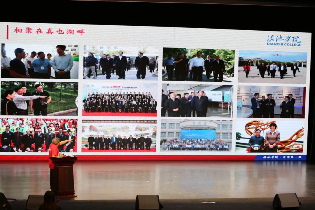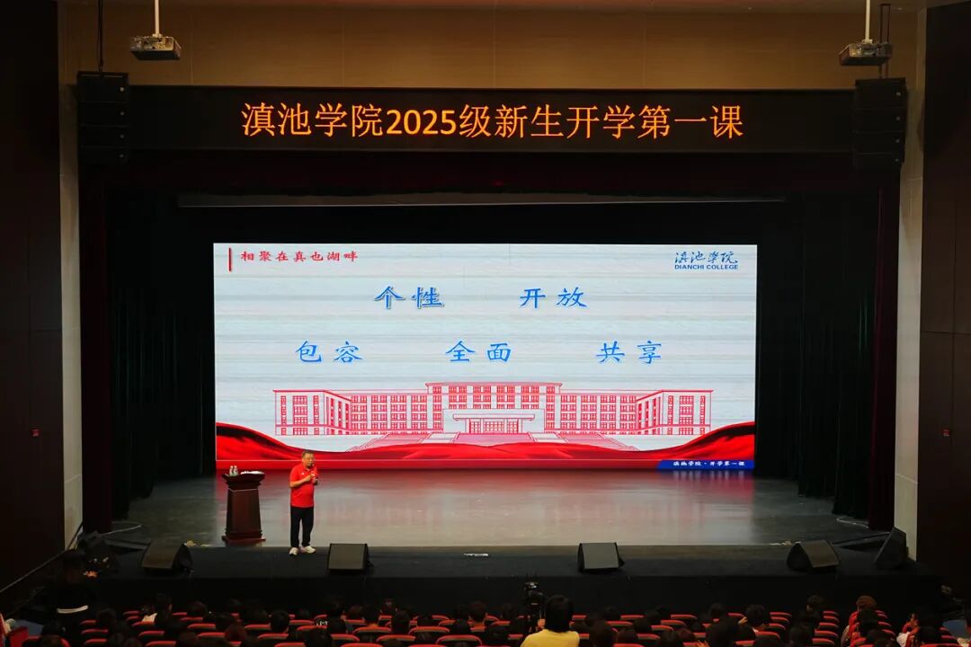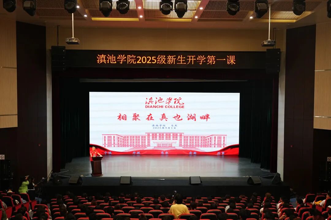 2025年9月1日,滇池学院校长马杰以“相聚在真也湖畔”为题,在杨林校区报告厅讲授“开学第一课”,为2025级新生开启作成为“滇院人”的崭新篇章。