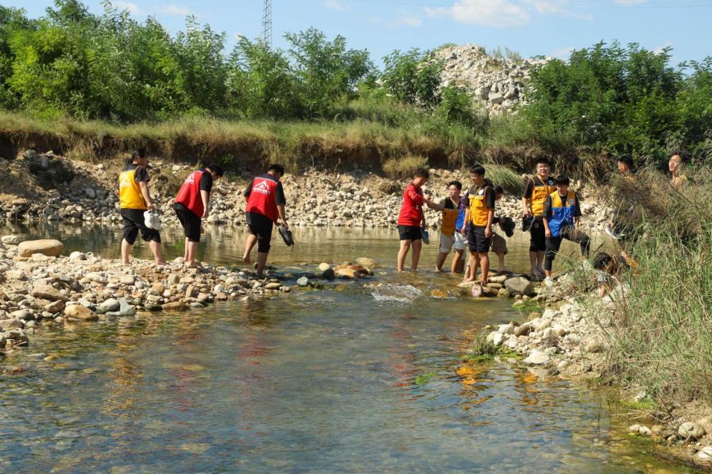 (图十 泰山科技学院特色全校学生必修课程--营地教育,学生正在进行溯溪)