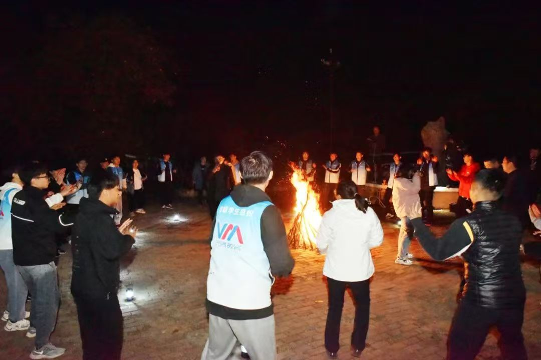 (图九 泰山科技学院特色全校学生必修课程--营地教育,学生正在进行篝火晚会)