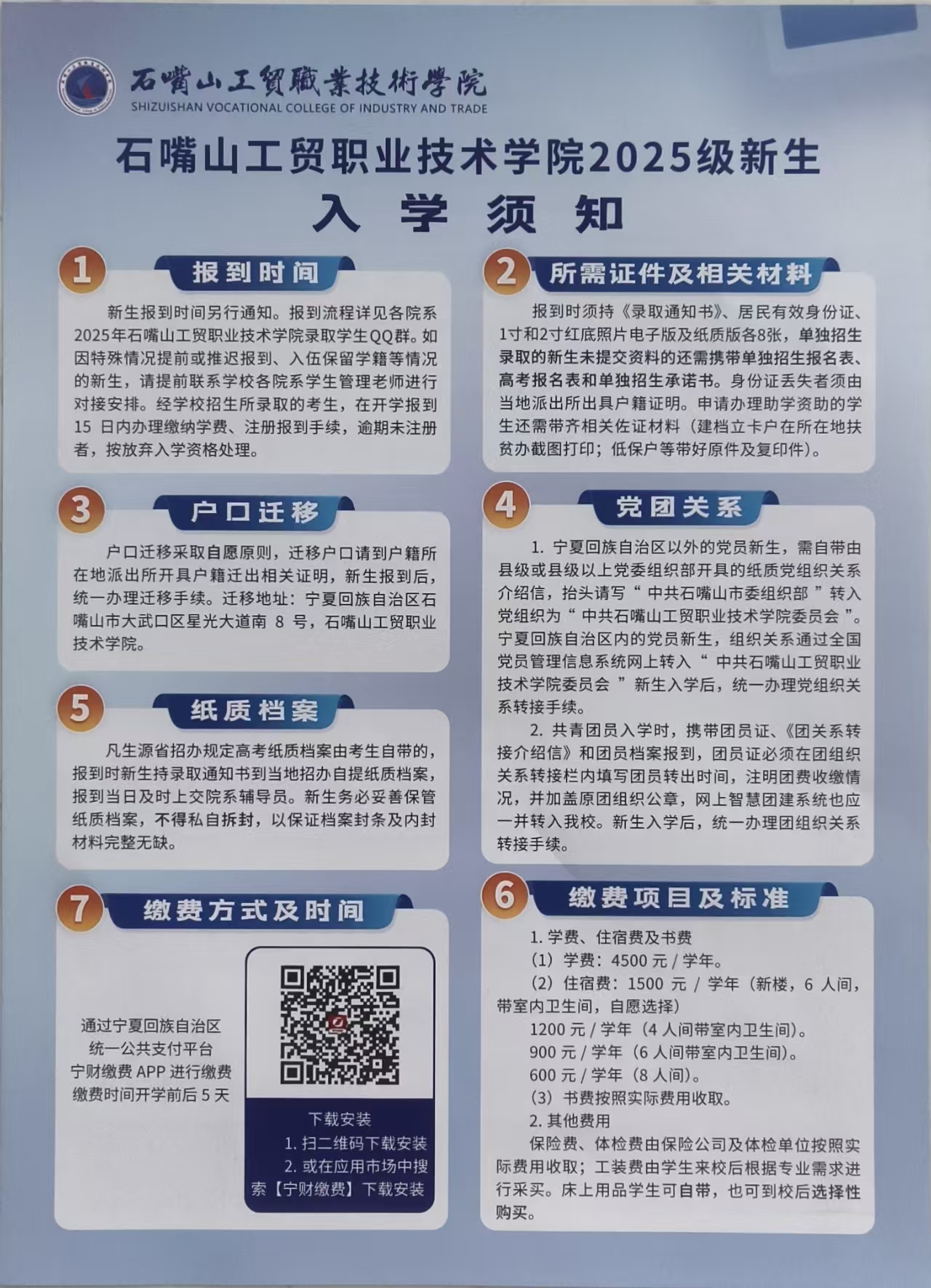 石嘴山工贸职业技术学院2025级新生入学须知