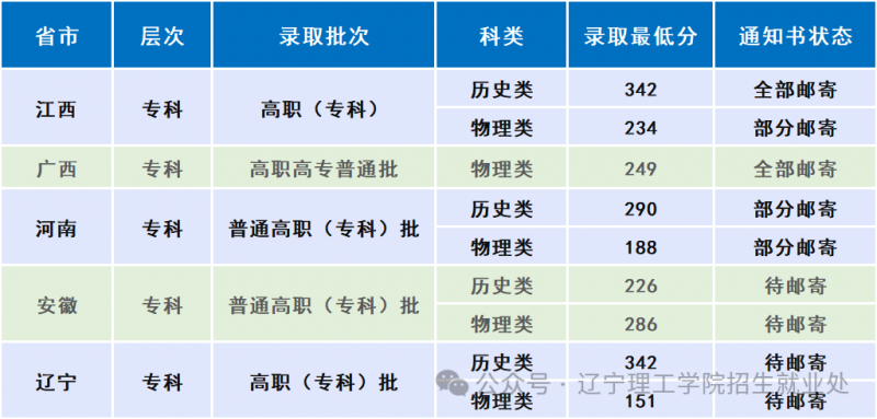 我校2025年招生录取工作已正式启动,录取期间将实时公布各省录取信息供广大考生进行查询,请持续关注辽宁理工学院招生网,辽宁理工学院招生就业处官方微信号,第一时间获取录取进程。