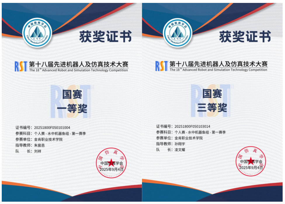 近日,第十八届国际先进机器人及仿真技术大赛落下帷幕。8月24日,金肯学院两支队伍暑期线上出征。机械学院刘祥获第十八届国际先进机器人及仿真技术大赛个人赛-水中机器鱼组-第一赛季国赛一等奖、凌文耀获第十八届国际先进机器人及仿真技术大赛个人赛-水中机器鱼组-第一赛季国赛三等奖。参赛学生主动放弃假期休闲时间,潜心钻研全新领域,终以佳绩为酷暑交以满意答卷。