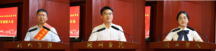 生物与食品工程学院于士军作为“最受学生欢迎的好老师”代表、地理信息与旅游学院陈光蕾作为青年教师代表、文学与传媒学院金雨桐作为学生代表分别发言。