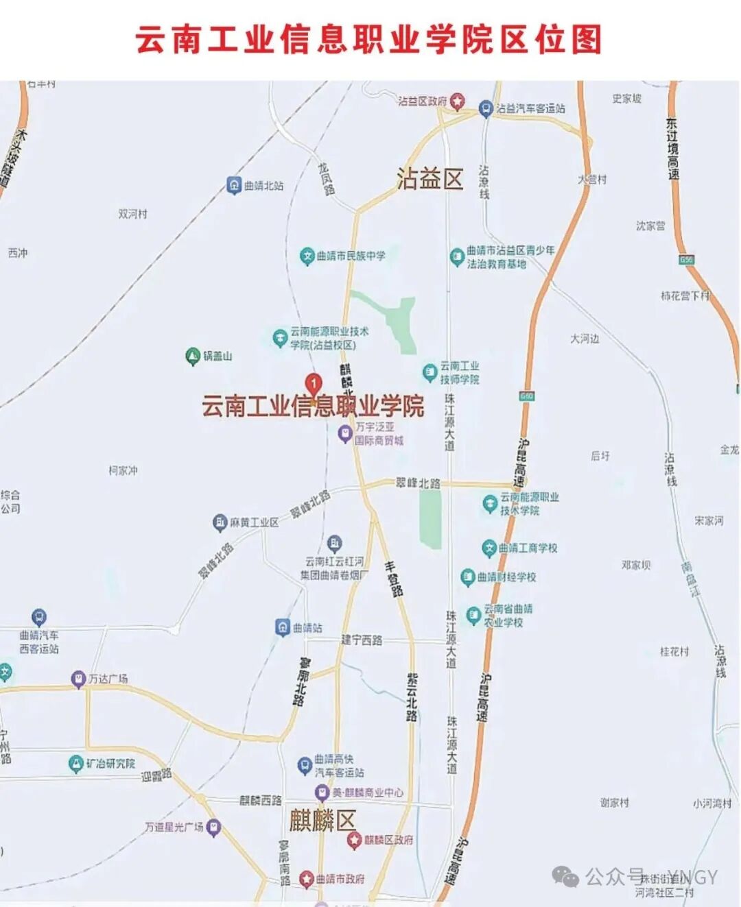 自行驾车者可导航至云南工业信息职业学院(曲靖市沾益区龙华街道太平社区万宇国际商贸城公交车站)