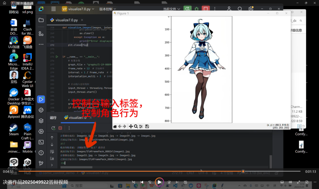 上半年备赛广东省赛时,我们首先着手筛选开发平台,最终选定了容易上手且开源的ComfyUI和Dify,来搭建交互式漫画生成平台。这两个工具都是可视化工作流编排,这一阶段的开发工作难度相对较低。为了冲击省赛一等奖,我提出将核心研发方向从文生图模型转向文生视频模型,放弃Dify智能体平台,转而在原生Python环境下开发新项目,以便最大程度借助Python丰富的社区生态资源。