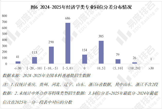 六、录取分数下降的多于上升的,经济学类专业报考难度下降