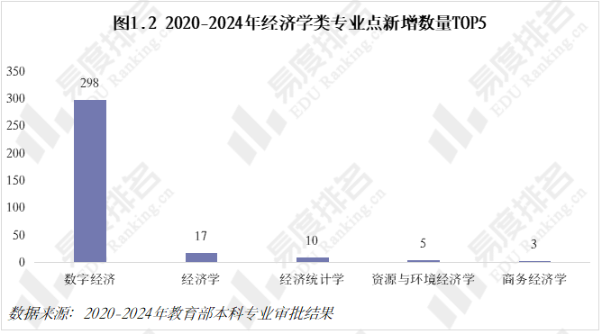 数字经济专业是2018年新增设的普通本科专业,近年开设该专业的院校较多,近五年新增了298个数字经济专业点,占到专业类中所有新增数量的88.4%。