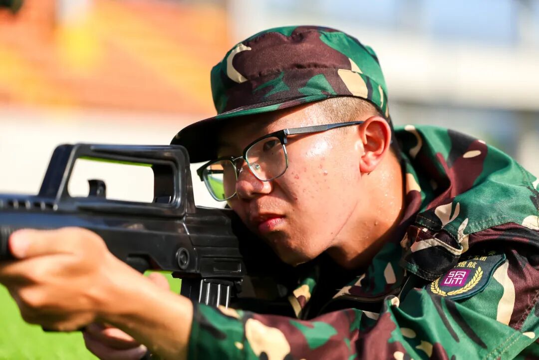 站军姿时,烈日下的汗水从关节滑落,让我学会了坚持;战术大比武中的呐喊振奋人心,点燃了训练场上的激情;思政讲座让我们懂得和平来之不易,科技强国强军的责任当在我辈。14天,我们晒黑了皮肤,却凝聚成牢不可破的集体。