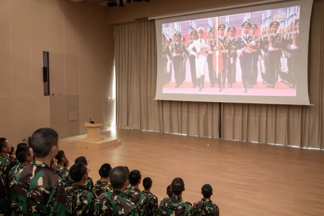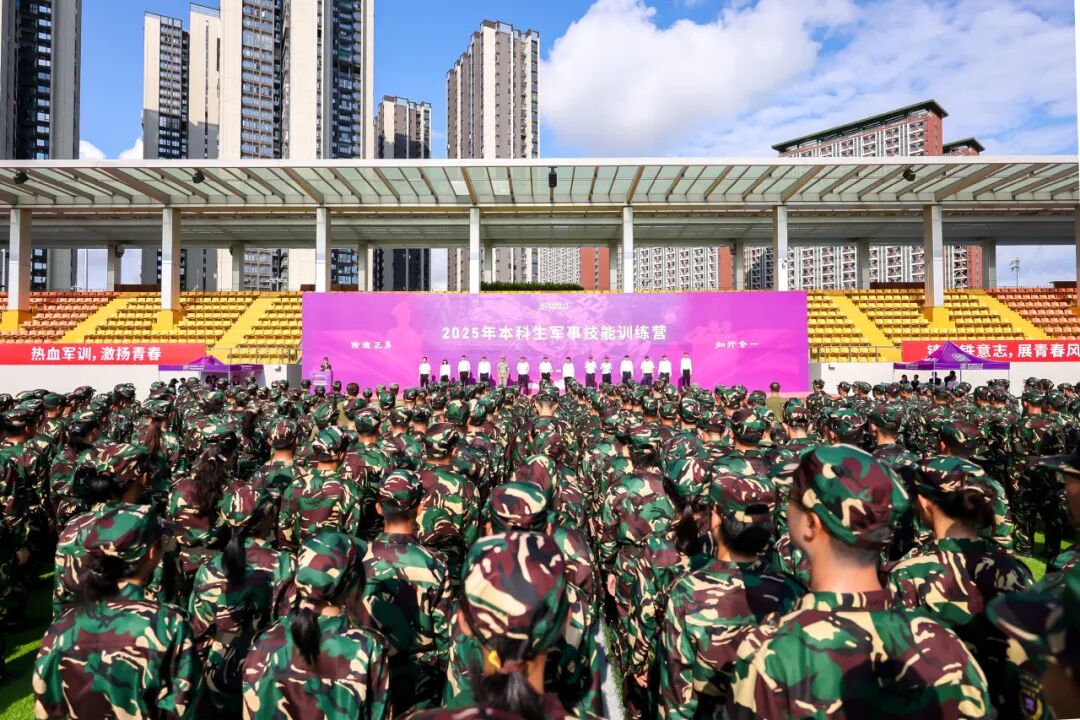 党委书记朱迪俭,党委副书记王慧,校长助理、教育工作部部长杨帆,各学院、职能部门、书院代表,32266部队领导和教官,以及全体参训学生与带队辅导师齐聚现场,共同见证了这一热血沸腾的时刻。