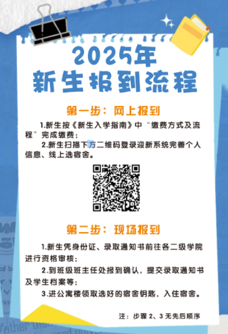 温馨提示:所有新生到校凭录取通知书从学院南门进入校园。请提前做好准备,以备查验。