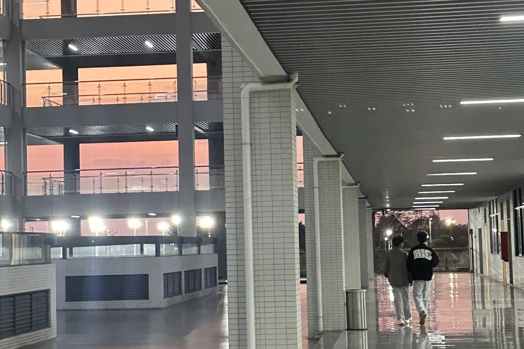 吹着晚风 欣赏学校的景色