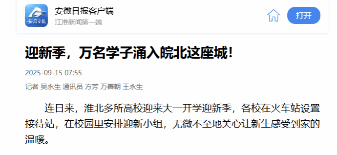 “为方便外地的新生,学院专门在淮北火车站设立志愿服务接待站。”该院团委负责人说。