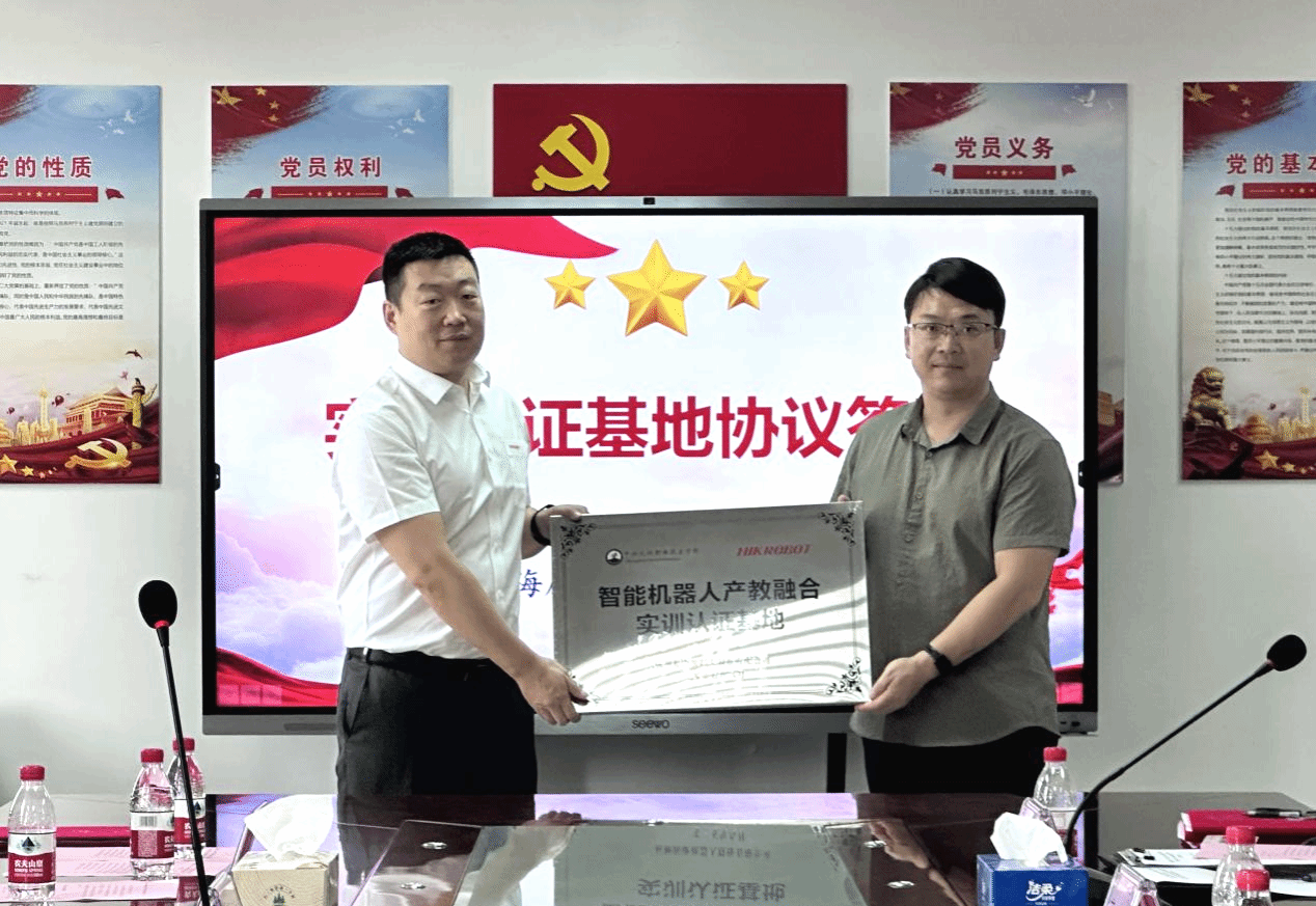 近日,我校光电信息学院与海康机器人股份有限公司共建的“智能机器人产教融合实训认证基地”揭牌仪式暨党支部联建活动在我校光谷楼704会议室举行。校企双方就支部联建、智能移动机器人(AMR)控制、装调、运维领域人才定向培养与认证体系建设等领域签署意向协议,共绘“新双高”周期专业内涵高质量发展新蓝图。