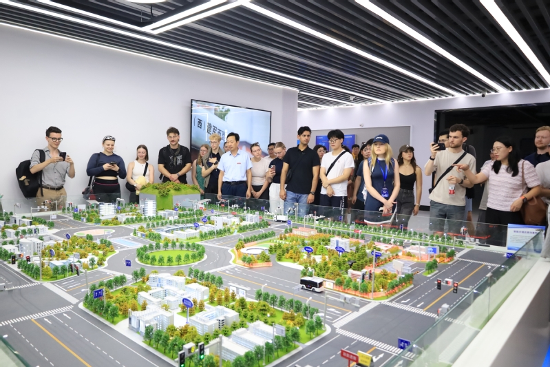 会前,在我校师生的陪同下,德国代表团实地参观了学校两大特色实践平台——理想汽车实训基地与百度智能网联创新示范基地。在理想汽车实训基地,代表团成员近距离观察新能源汽车装配流程、核心零部件检测技术,详细了解基地依托企业资源开发的实践课程体系;走进百度智能网联创新示范基地,自动驾驶模拟舱、智能交通信号控制系统等前沿设备吸引众人驻足,我校教师现场演示了智能网联技术在教学中的应用场景,直观展现了学校产教融合、校企合作的办学特色,赢得代表团成员的高度认可。